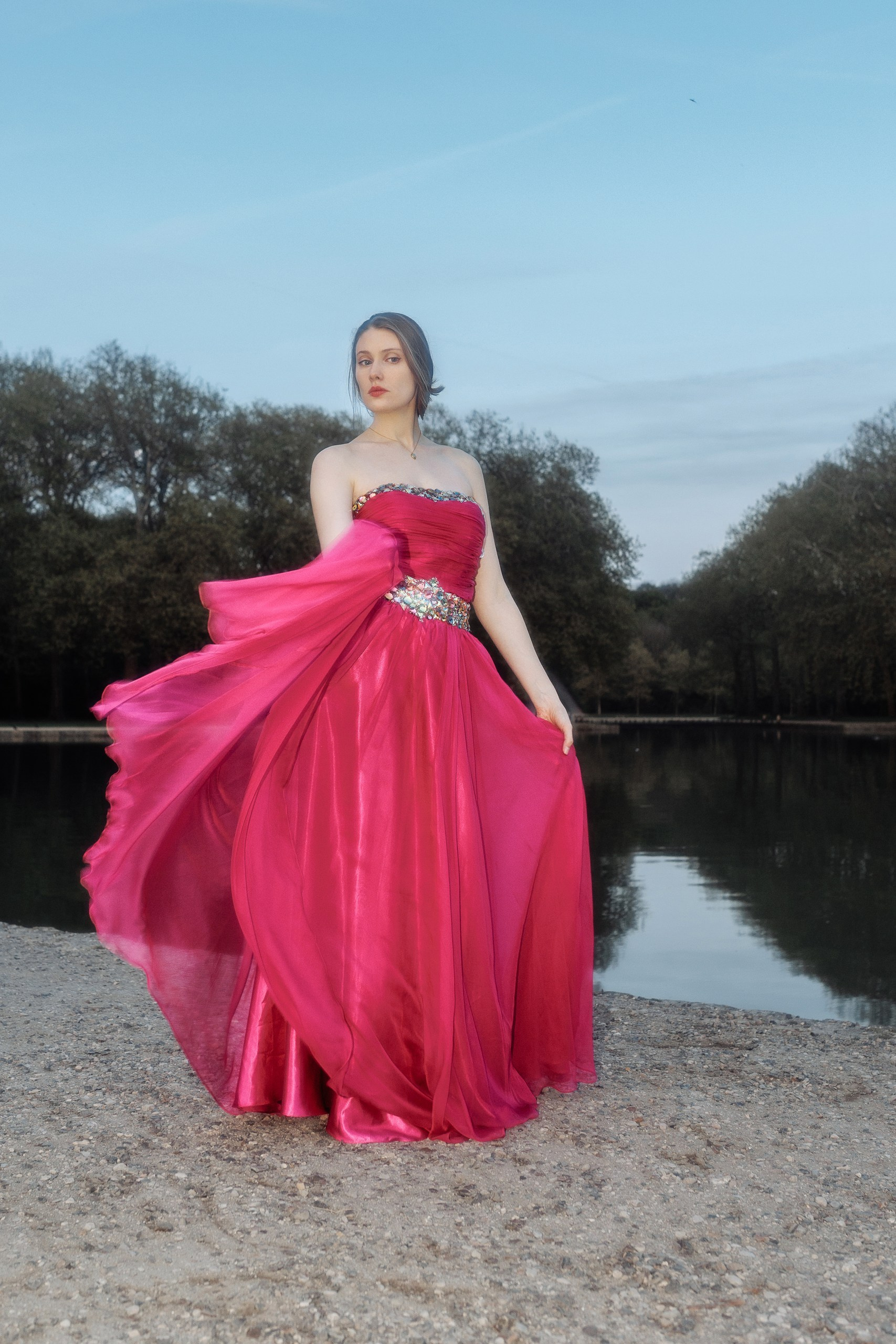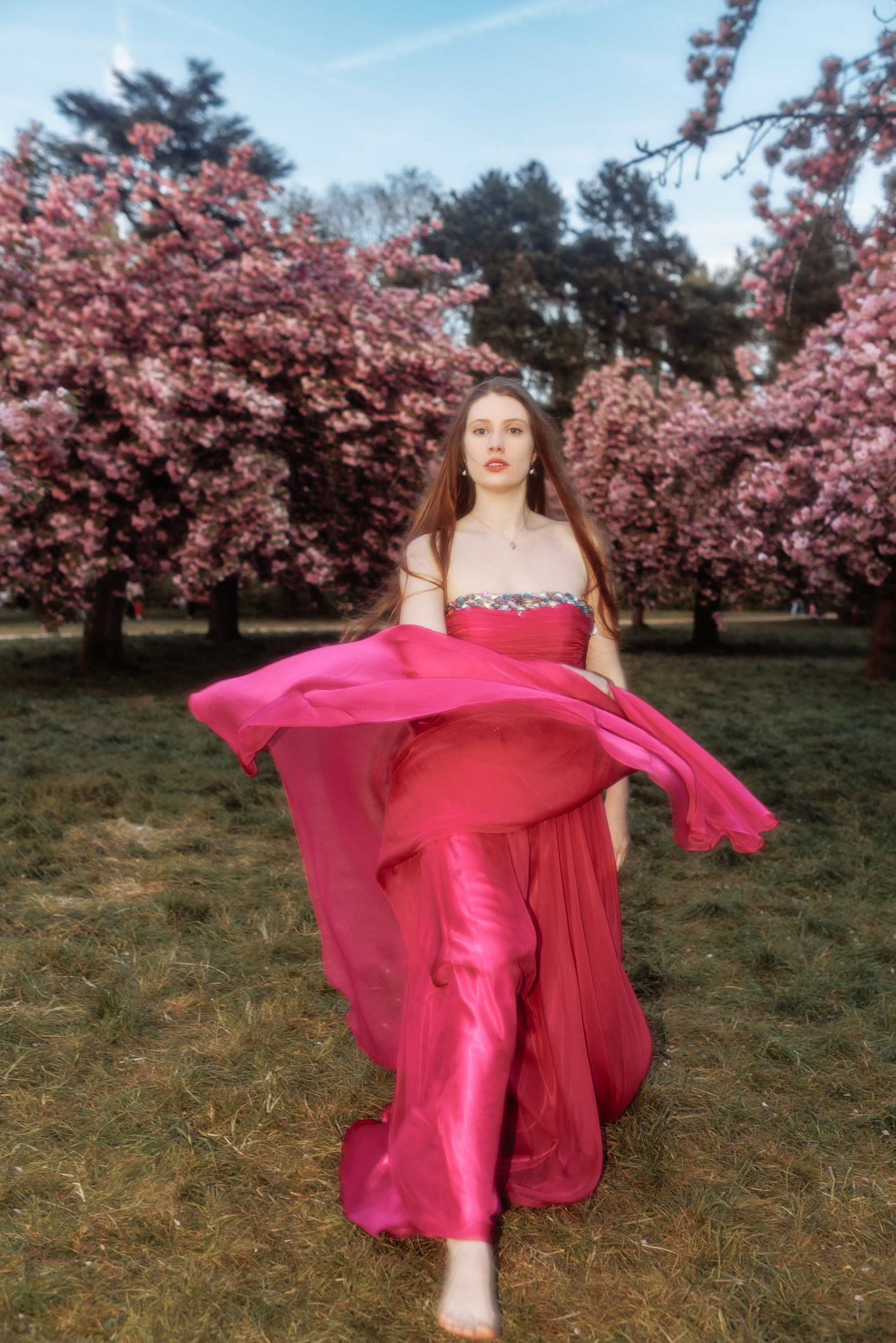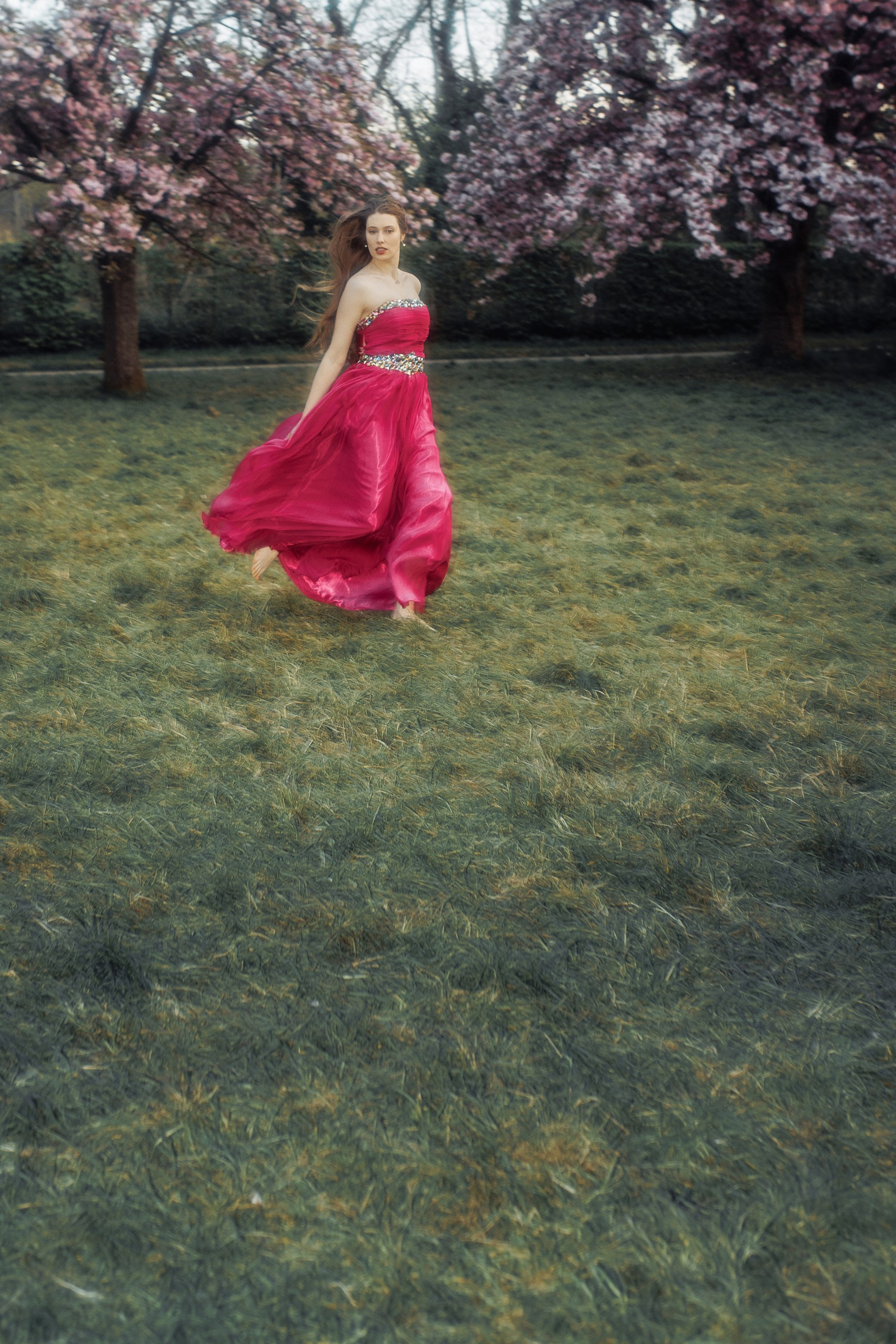 Для создания особой атмосферы была выбрана Parc de Sceaux — один из самых романтичных парков в пригороде Парижа, знаменитый своими аллеями сакуры. Съёмка длилась около трёх часов, включая кадры на волшебном закатном солнце и съёмку после его захода. Вечерний свет и наступающие сумерки наполнили фотографии глубиной и сделали образы ещё более атмосферными — нежными, немного сказочными и чуть таинственными.