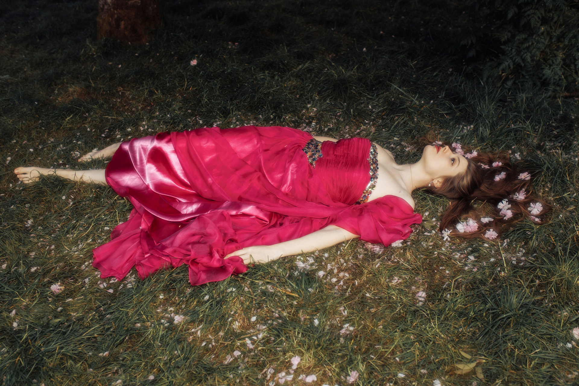 В результате фотосессии родились фотографии, где героиня выглядит словно из другой эпохи — нежная, загадочная, существует вне времени и суеты. Эта серия стала не просто коллекцией стильных портретов, а визуальной историей, в которой современность встречается с художественными традициями прерафаэлитов, а каждая деталь играет роль в создании единого поэтического образа.